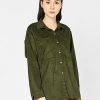 - Áo sơ mi nữ da lộn, dài tay, cổ đức, túi vuông ốp